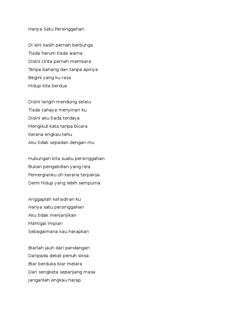 Lirik Lagu Hanya Satu Persinggahan Mp3 Storymusik